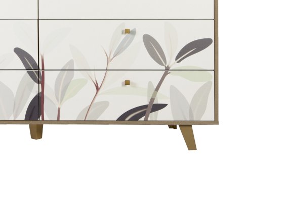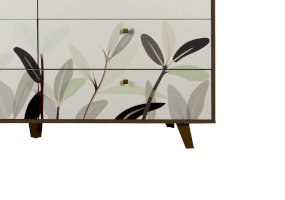 Принт на фасадах комода создан нашими дизайнерами вручную. Рисунок нанесен при помощи технологии УФ-печати. Принты не выцветают со временем и устойчивы к механическому воздействию.